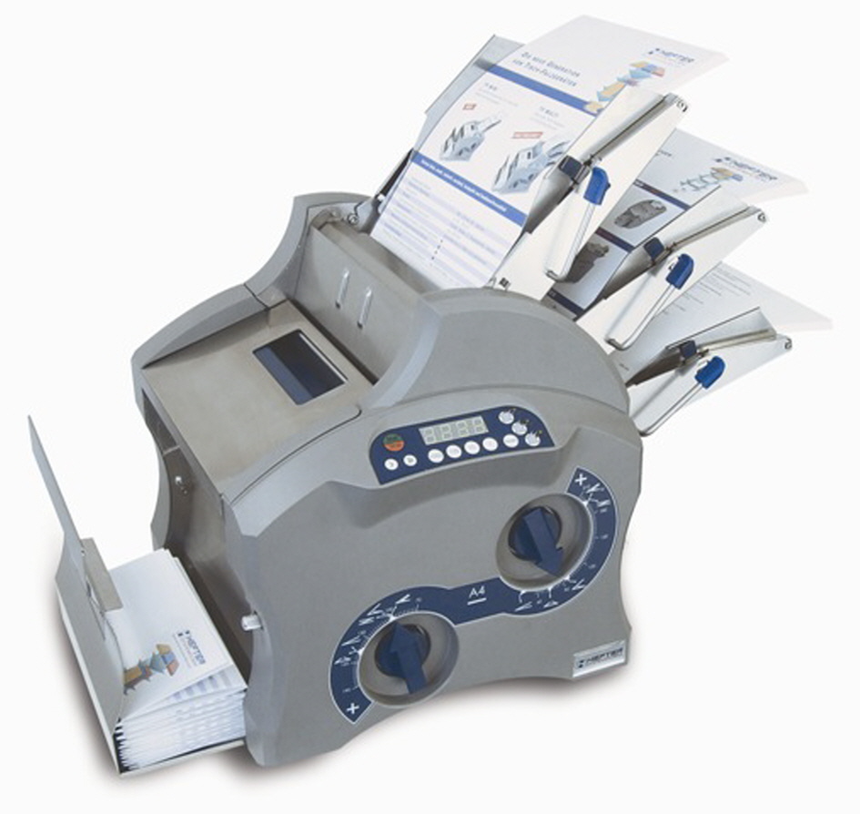 Der neue TF-Multi falzt natürlich alle unterschiedlichsten Papiergrößen. Er wird super einfach bedient und kann durch seine 3 Papierzuführungen entweder nacheinander oder gleichzeitig bis zu 3 Blatt vom Stapel falzen, ganz so wie Sie es brauchen! Vorwahl- und Stück-Zähler sowie Papierüberwachung durch Stau-Sensor und eigenem Tagesposteingabeschacht versteht sich. So können Sie bis 5 Blatt auch geklammert verarbeiten. Bei Tagespost automatische Auslösung durch Foto-Sensor.