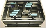 Mit 8 freipositionierbaren Druckköpfen (basierend auf HP-InkJet Technologie) kann ein Druckfeld mit einer Fläche von bis zu 101,6 x 431,8 mm in einem Durchlauf bedruckt werden! Die Druckköpfe sind zu je 4 Stück mit einem Druckfeld von 50,8 mm Höhe verkettet.