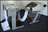 Ein Kontrollschema mit LED-Anzeige verschafft dem Bediener einen schnellen Überblick über die Einsatzbereitschaft des Gerätes. Alle Geräte sind auf ein Fußgestell montiert. Damit ist ein rascher Ortswechsel auch für Trennautomaten dieser gehobenen Leistungsklasse jederzeit möglich. Alle Modelle können bis zu 24.000 12"-Formulare pro Stunde bearbeiten. Schon in der Grundausstattung können Sie das Gerät wählen, das Ihren Organisationsbedürfnissen am besten entspricht.
