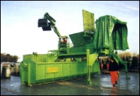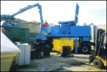 Mobile Sonderabfallzerkleinerungsanlage mit Ladekran u. Feuerlöschanlage. |