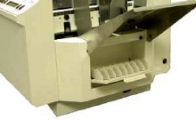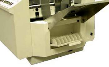 Durch die von unten abziehbare Materialzuführung von bis zu 600 Kuverts kann permanent Material nachgelegt werden. Es können alle auf Ihrem Rechner verfügbaren TrueType Schriften sowie Graphiken, Logos und Barcodes aufgebracht werden.