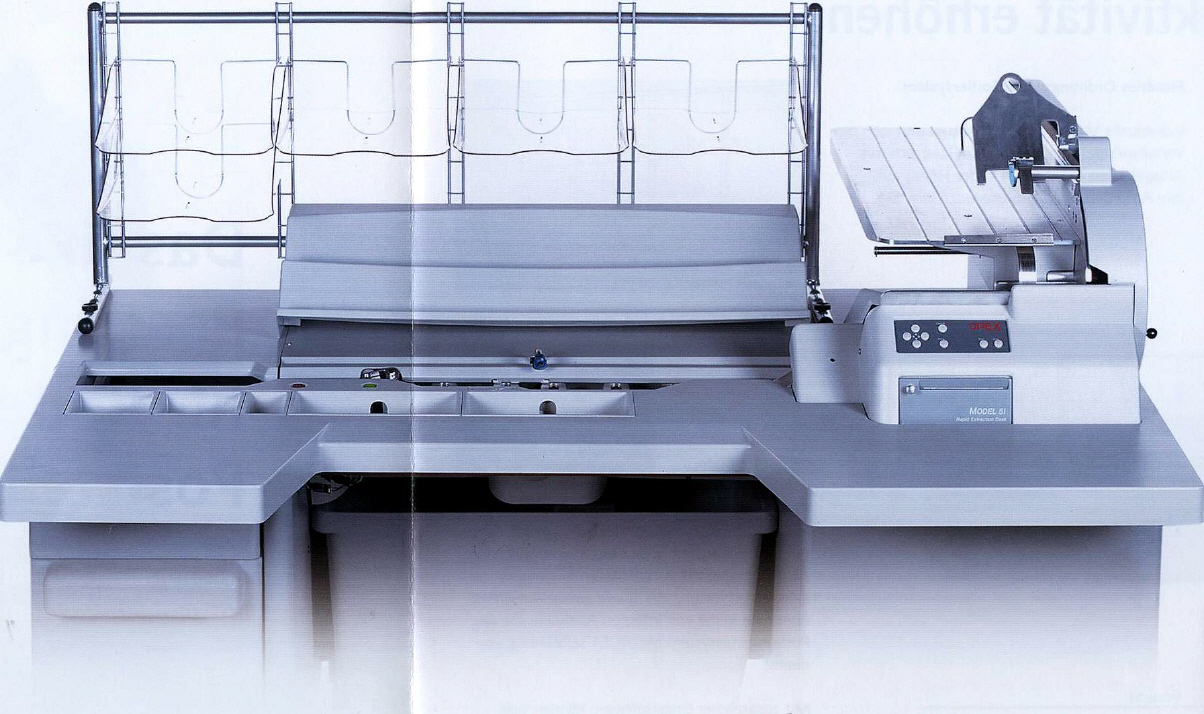 Und es gibt sie doch -die zukunftssichere Alternative für die Bearbeitung von Mischpost, seit über 10 Jahren international tausendfach bewährt. An einem ergonomisch optimal gestalteten Arbeitsplatz beschleunigen Sie die Bearbeitung Ihrer Eingangspost. Die integrierte doppelte Inhaltskontrolle, die Zwei-Seiten-Öffnung, bei der die Briefe vor dem Öffnen nach unten aufgeschlagen werden, um Verletzung von Inhalten zu vermeiden und viele andere technische Details machen das System vom amerikanischen Marktführer OPEX zur richtigen Entscheidung.