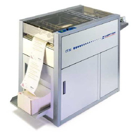 Durch integrierte, synchronangetriebene Vortrennstation ist der CT 31 zur Verarbeitung, von im Doppelnutzen erzeugten Formulare, im Slalomdruck prädestiniert. Natürlich wird hier zur exakten Verarbeitung das Papier über angetriebene Papierführungen (Stachelbänder) transportiert.